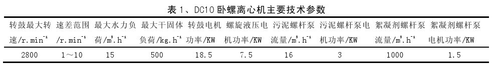 臥螺離心脫水機具有分離效果良好、工作效率高、使用管理維護簡單方便的特點,并且臥螺離心脫水機采用全封閉的結構,避免了帶式壓慮機存在的種種弊端(如現場環境惡劣、臭味大、大量使用絮凝劑和清洗水、設備體積大、日常使用維護麻煩),目前在污水處理、食品、醫藥、化工等領域的固液分離中得到廣泛的應用,本研究根據生產實踐,探索了速差、工作壓力等控制條件對污泥脫水效果影響的變化規律,總結了使離心機的穩定運行的調整方法。